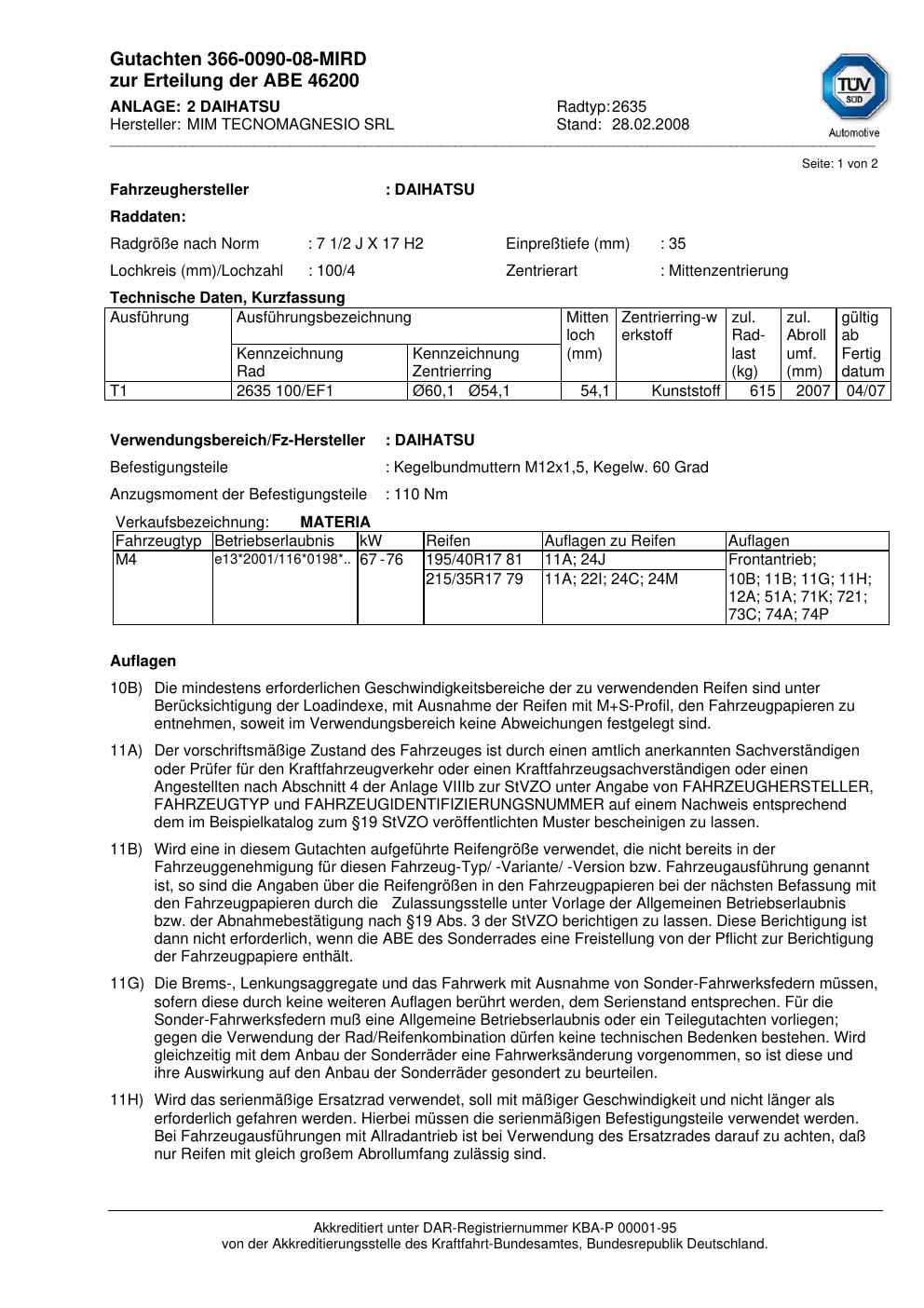 Dieses Gutachten (abe) bezieht sich auf die Alufelge ATS 2635 in der Ausführung 2Jx17 ET 0, Mittenloch 0 mm (KBA 46200). Im PDF findest du typischerweise zulässige Reifengrößen, Auflagen/Anbauhinweise und – je nach Dokument – Hinweise zur Eintragung.