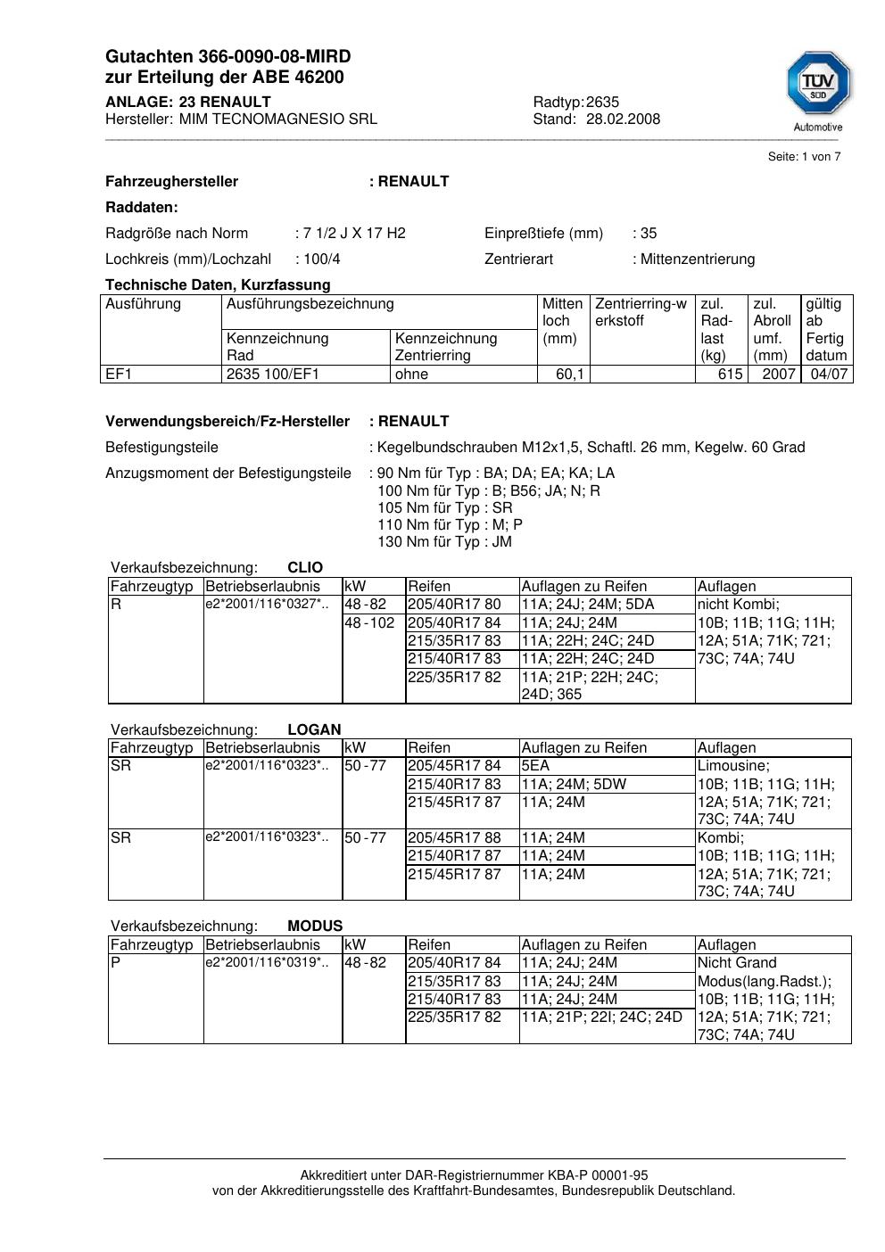 Felgengutachten / abe für Alufelgen ATS 2635 (2Jx17 ET 0, Mittenloch 0 mm) mit KBA 46200 (Zertifikatsnummer 46200). Hier kostenlos als PDF herunterladen. Der Download-Link ist 24 Stunden gültig und kann bis zu zwei Mal verwendet werden.