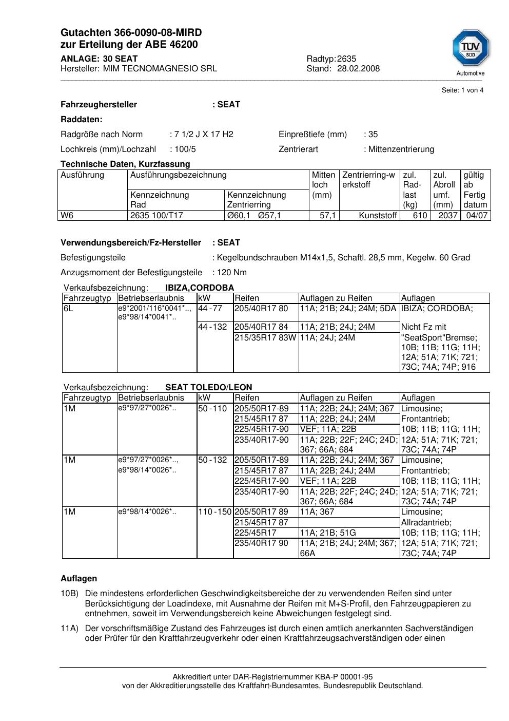 Passend für: SEAT (1 Hersteller, 1 Varianten)