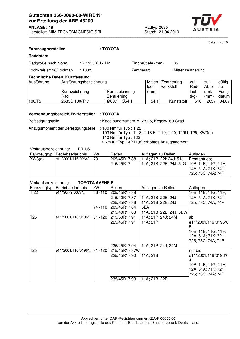 Felgengutachten / abe für Alufelgen ATS 2635 (2Jx17 ET 0, Mittenloch 0 mm) mit KBA 46200 (Zertifikatsnummer 46200). Hier kostenlos als PDF herunterladen. Der Download-Link ist 24 Stunden gültig und kann bis zu zwei Mal verwendet werden.
