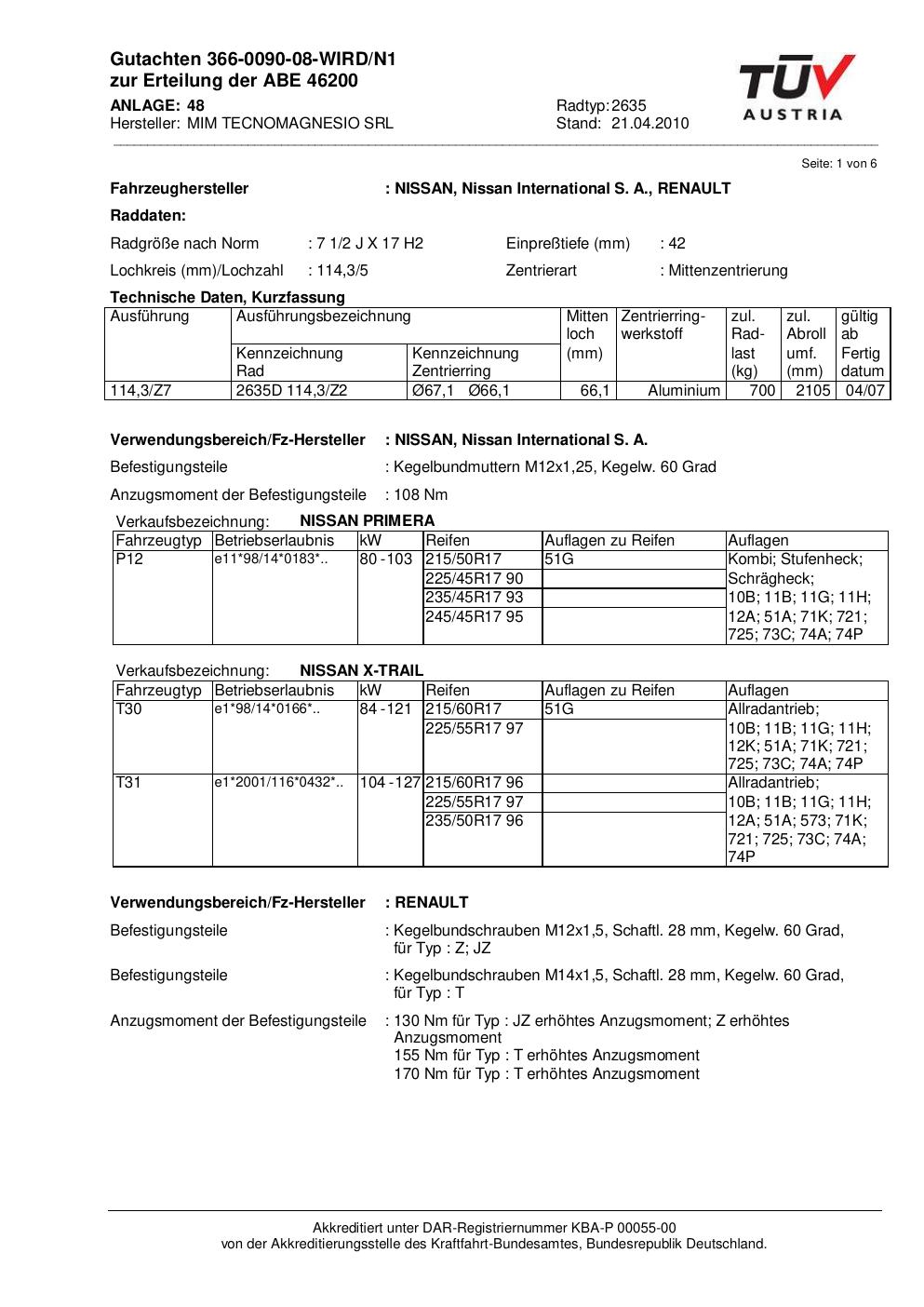 Felgengutachten / abe für Alufelgen ATS 2635 (2Jx17 ET 0, Mittenloch 0 mm) mit KBA 46200 (Zertifikatsnummer 46200). Hier kostenlos als PDF herunterladen. Der Download-Link ist 24 Stunden gültig und kann bis zu zwei Mal verwendet werden.