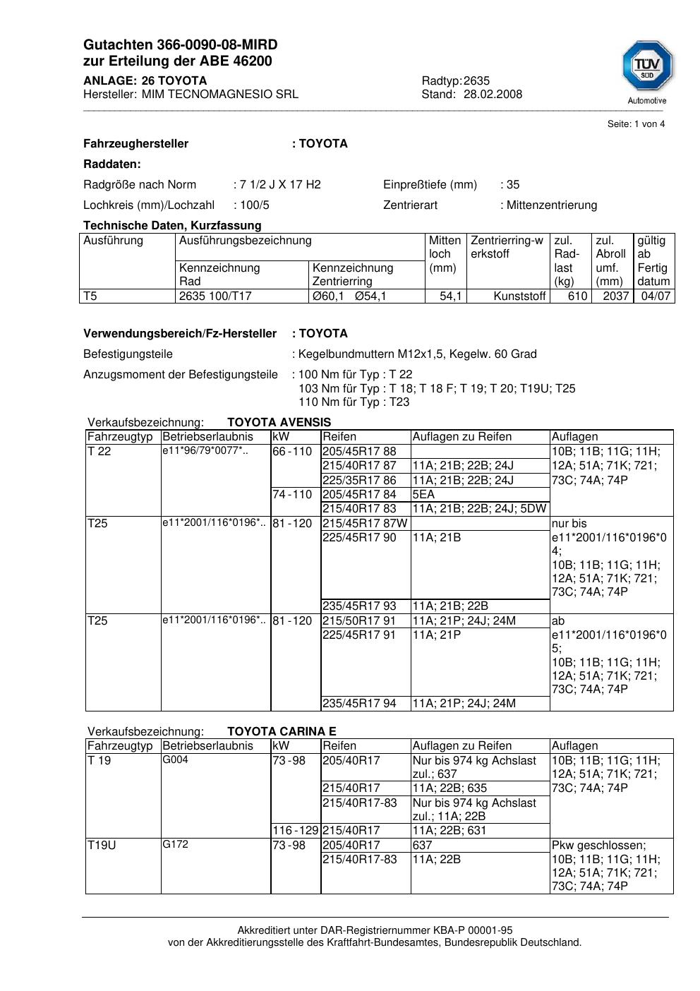 Felgengutachten / abe für Alufelgen ATS 2635 (2Jx17 ET 0, Mittenloch 0 mm) mit KBA 46200 (Zertifikatsnummer 46200). Hier kostenlos als PDF herunterladen. Der Download-Link ist 24 Stunden gültig und kann bis zu zwei Mal verwendet werden.