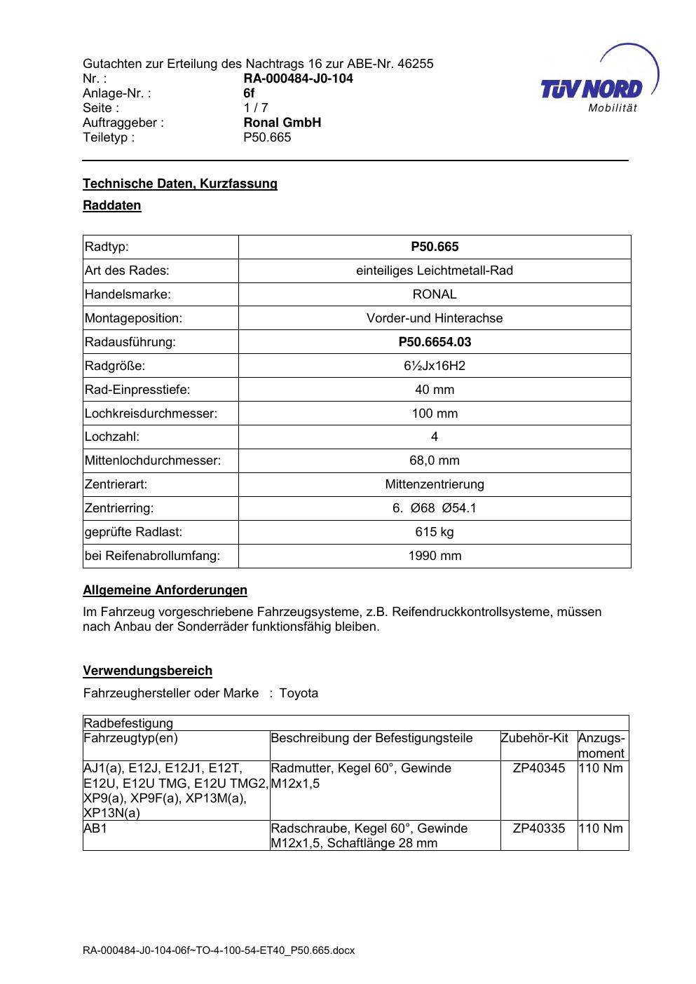 Dieses Gutachten (abe) bezieht sich auf die Alufelge ATS P50.665 in der Ausführung ET 0, Mittenloch 0 mm (KBA 46255). Im PDF findest du typischerweise zulässige Reifengrößen, Auflagen/Anbauhinweise und – je nach Dokument – Hinweise zur Eintragung.