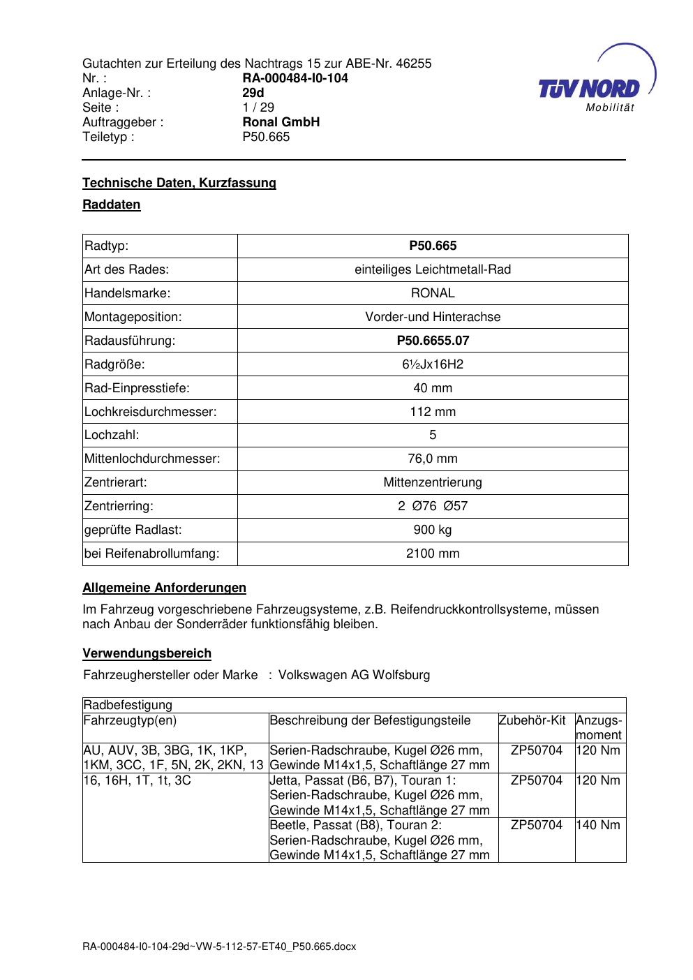• Stimmt die KBA-Nummer auf der Felge mit diesem Dokument überein?
