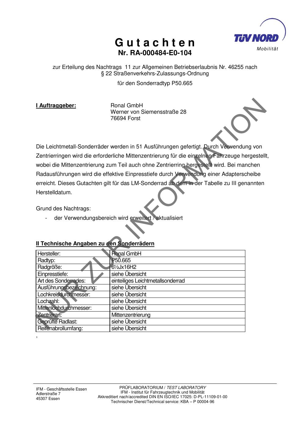 • Stimmt die KBA-Nummer auf der Felge mit diesem Dokument überein?