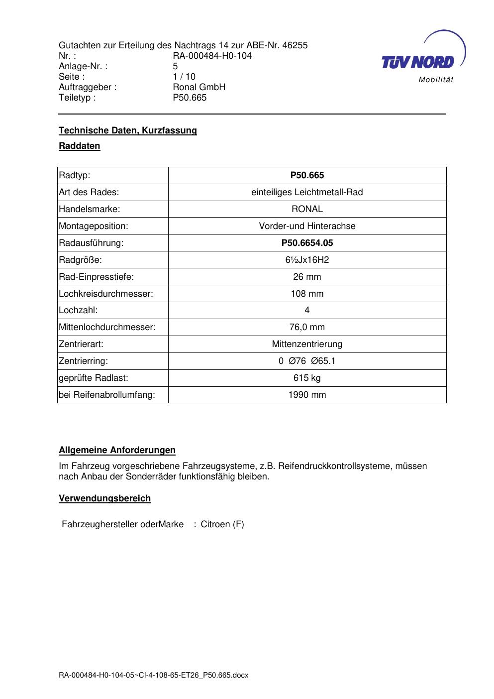 Dieses abe gehört zur Felge Ronal P50.665 in ET0 mit KBA 46255. Die Seite ist dafür gedacht, dass du schnell prüfen kannst, ob KBA, Design und Größe zu deiner Felge passen und danach direkt das richtige PDF lädst.