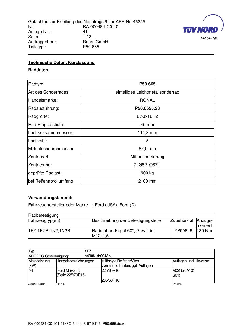 • Stimmt die KBA-Nummer auf der Felge mit diesem Dokument überein?