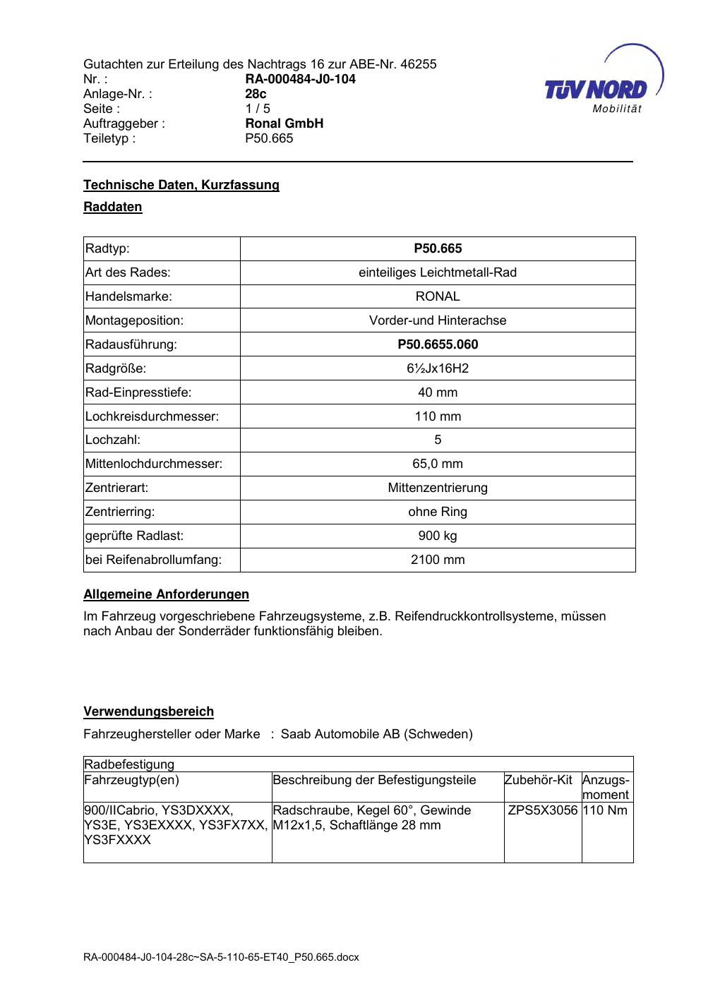 Dieses abe gehört zur Felge Ronal P50.665 in ET0 mit KBA 46255. Die Seite ist dafür gedacht, dass du schnell prüfen kannst, ob KBA, Design und Größe zu deiner Felge passen und danach direkt das richtige PDF lädst.