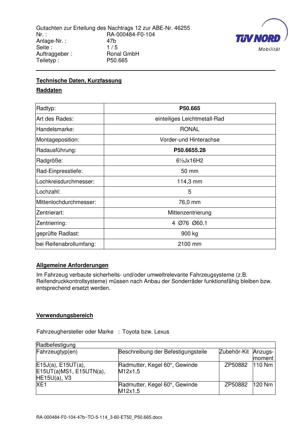 • Stimmt die KBA-Nummer auf der Felge mit diesem Dokument überein?