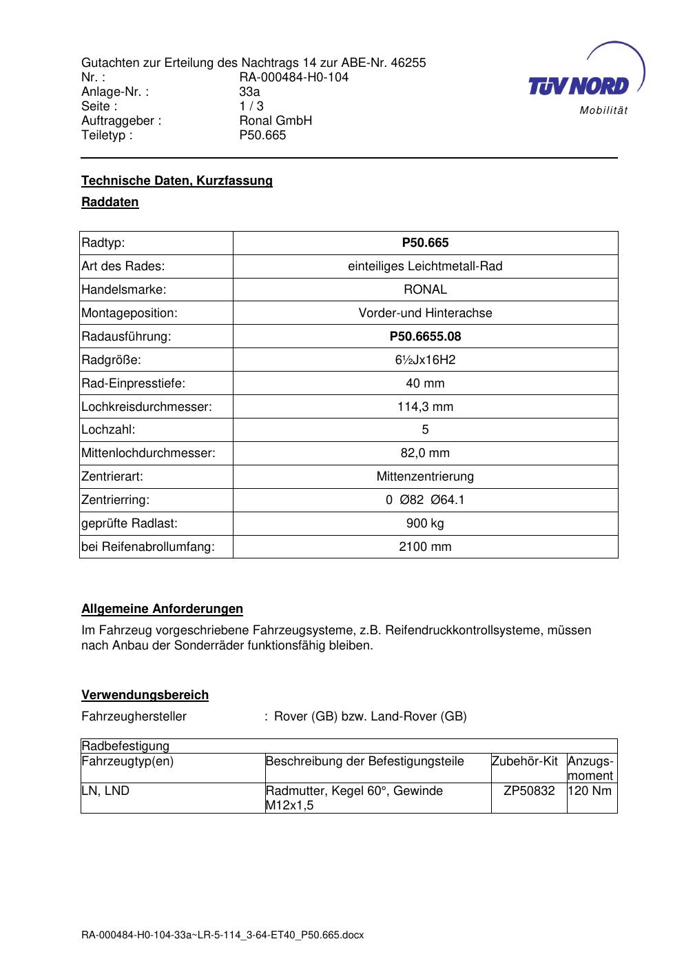 • Stimmt die KBA-Nummer auf der Felge mit diesem Dokument überein?
