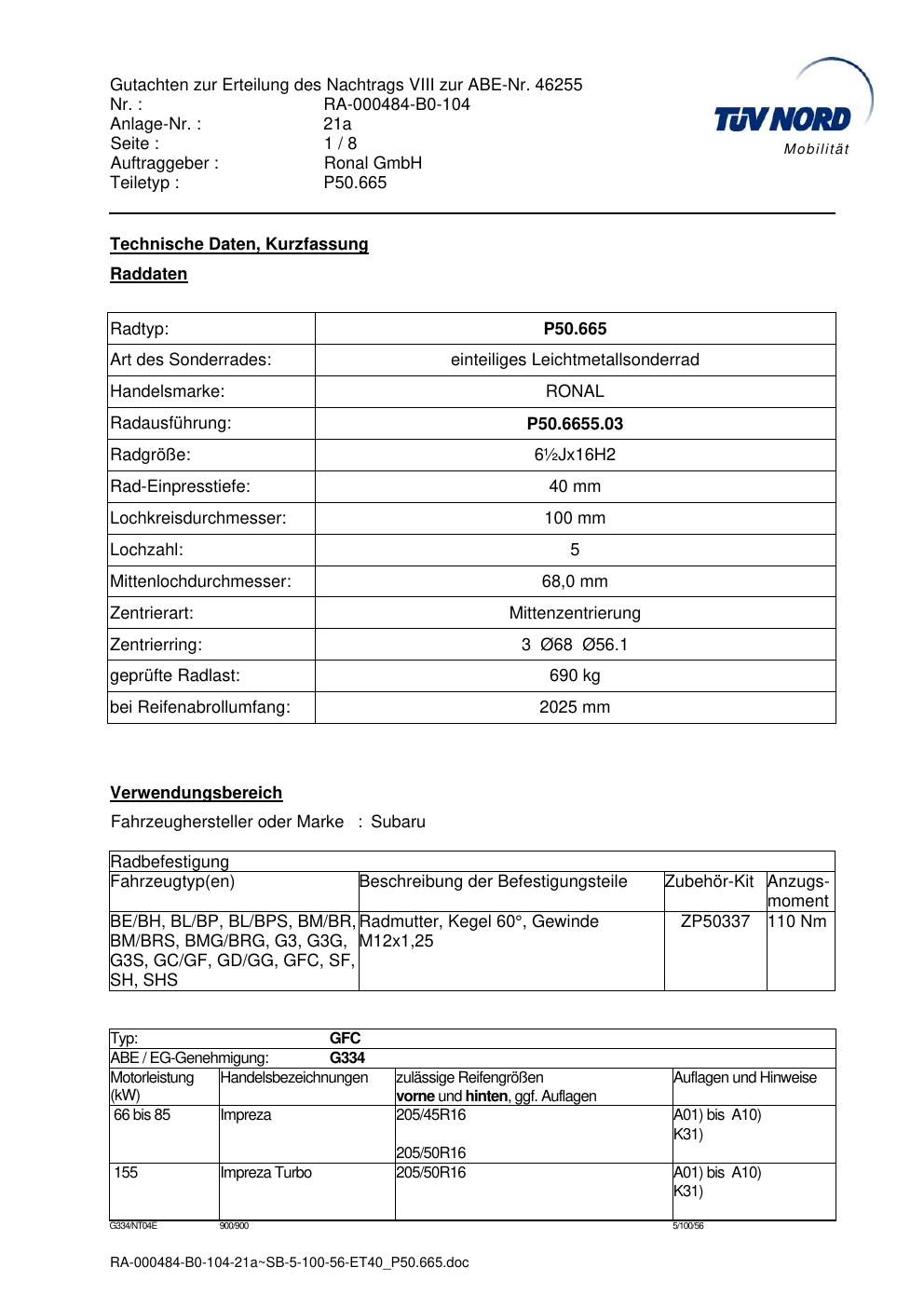 • Stimmt die KBA-Nummer auf der Felge mit diesem Dokument überein?