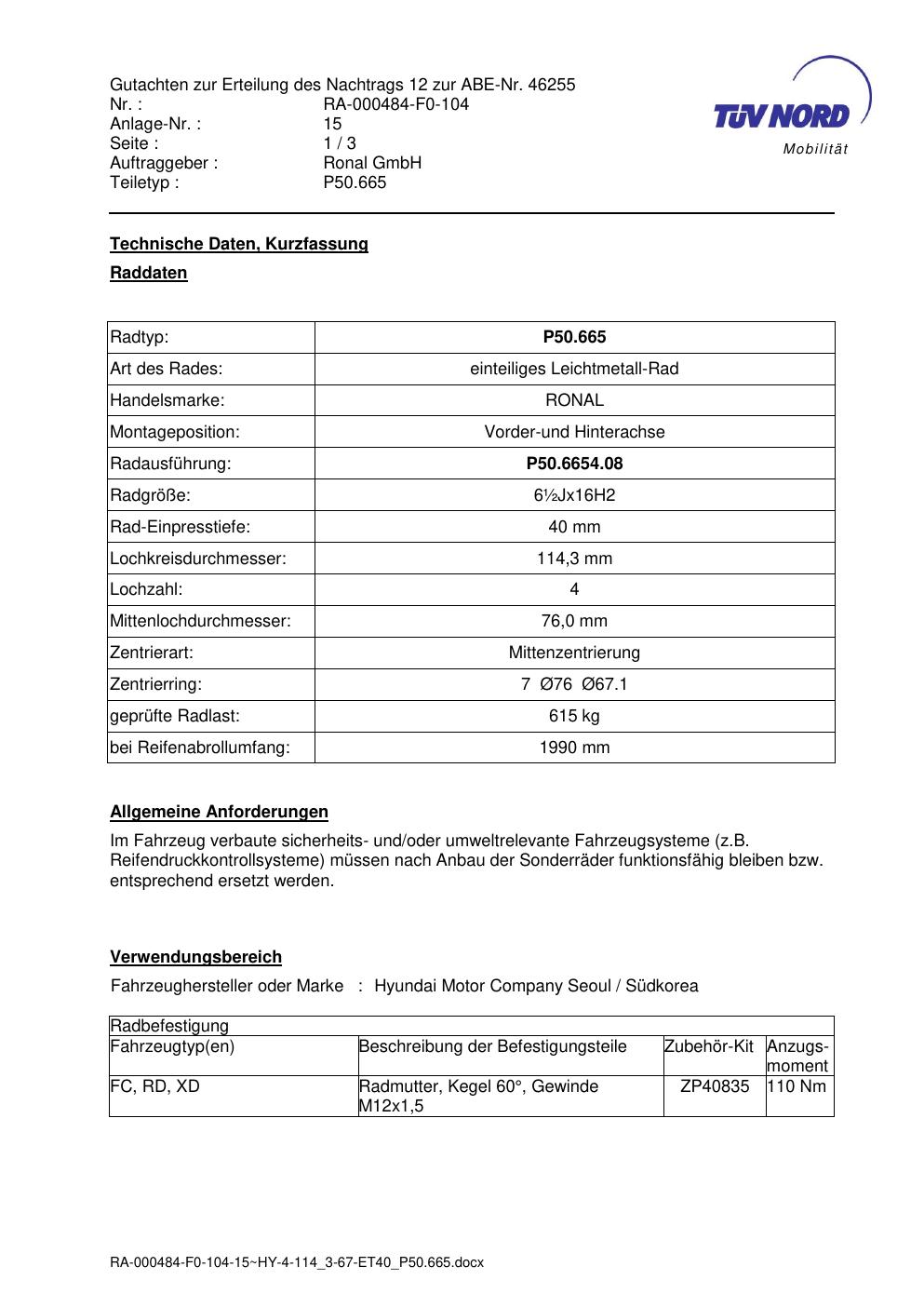 • Stimmt die KBA-Nummer auf der Felge mit diesem Dokument überein?