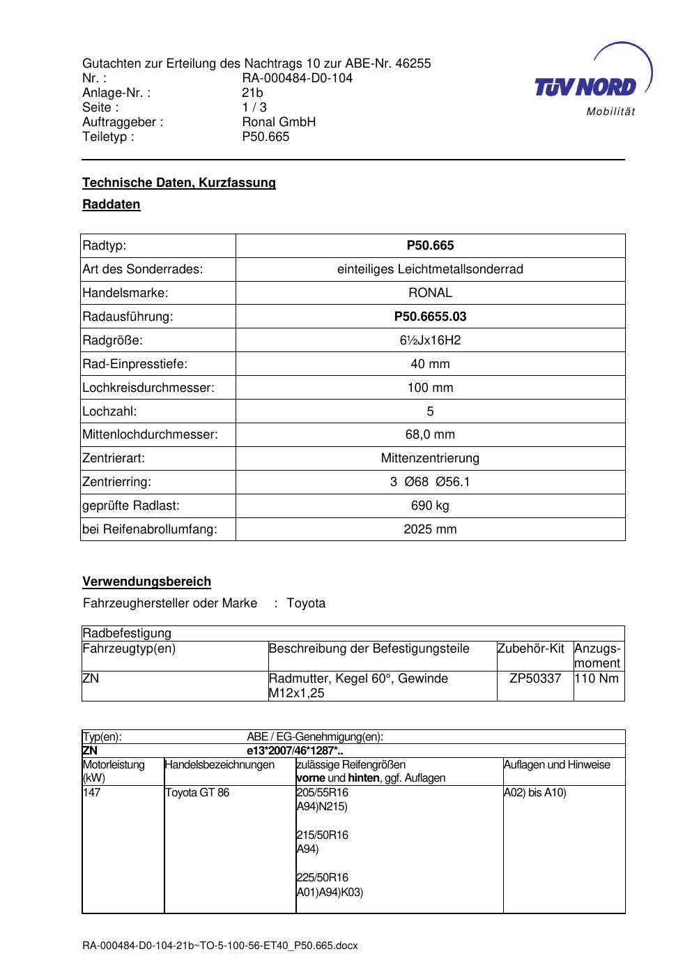 Dieses abe gehört zur Felge Ronal P50.665 in ET0 mit KBA 46255. Die Seite ist dafür gedacht, dass du schnell prüfen kannst, ob KBA, Design und Größe zu deiner Felge passen und danach direkt das richtige PDF lädst.
