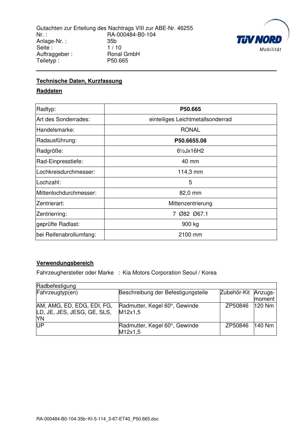 • Stimmt die KBA-Nummer auf der Felge mit diesem Dokument überein?