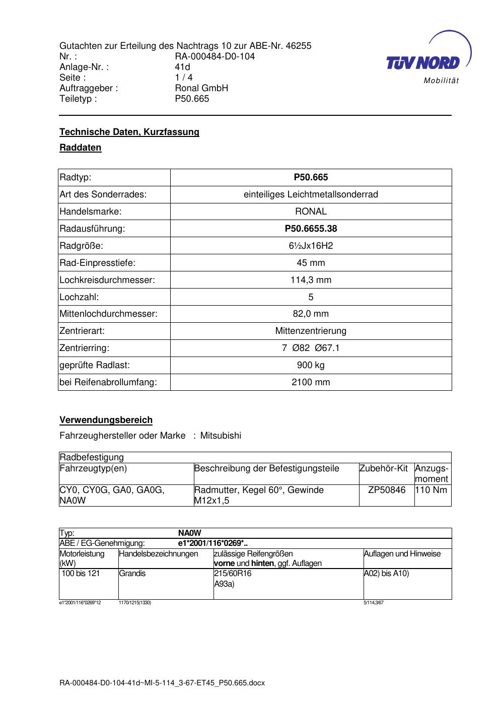 • Stimmt die KBA-Nummer auf der Felge mit diesem Dokument überein?