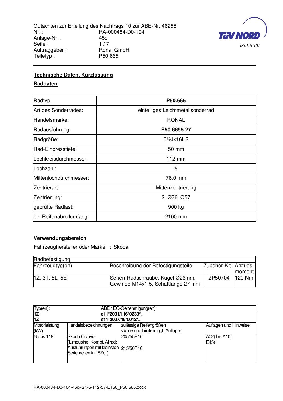 Dieses abe gehört zur Felge Ronal P50.665 in ET0 mit KBA 46255. Die Seite ist dafür gedacht, dass du schnell prüfen kannst, ob KBA, Design und Größe zu deiner Felge passen und danach direkt das richtige PDF lädst.