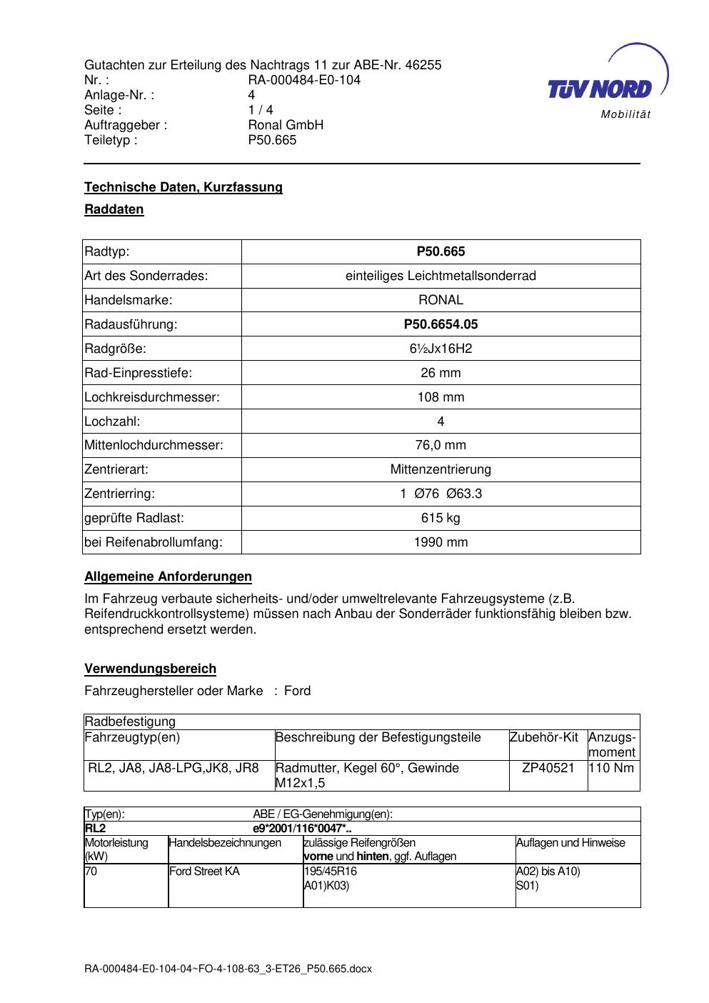 - Stimmt die KBA-Nummer auf der Felge mit diesem Dokument überein?