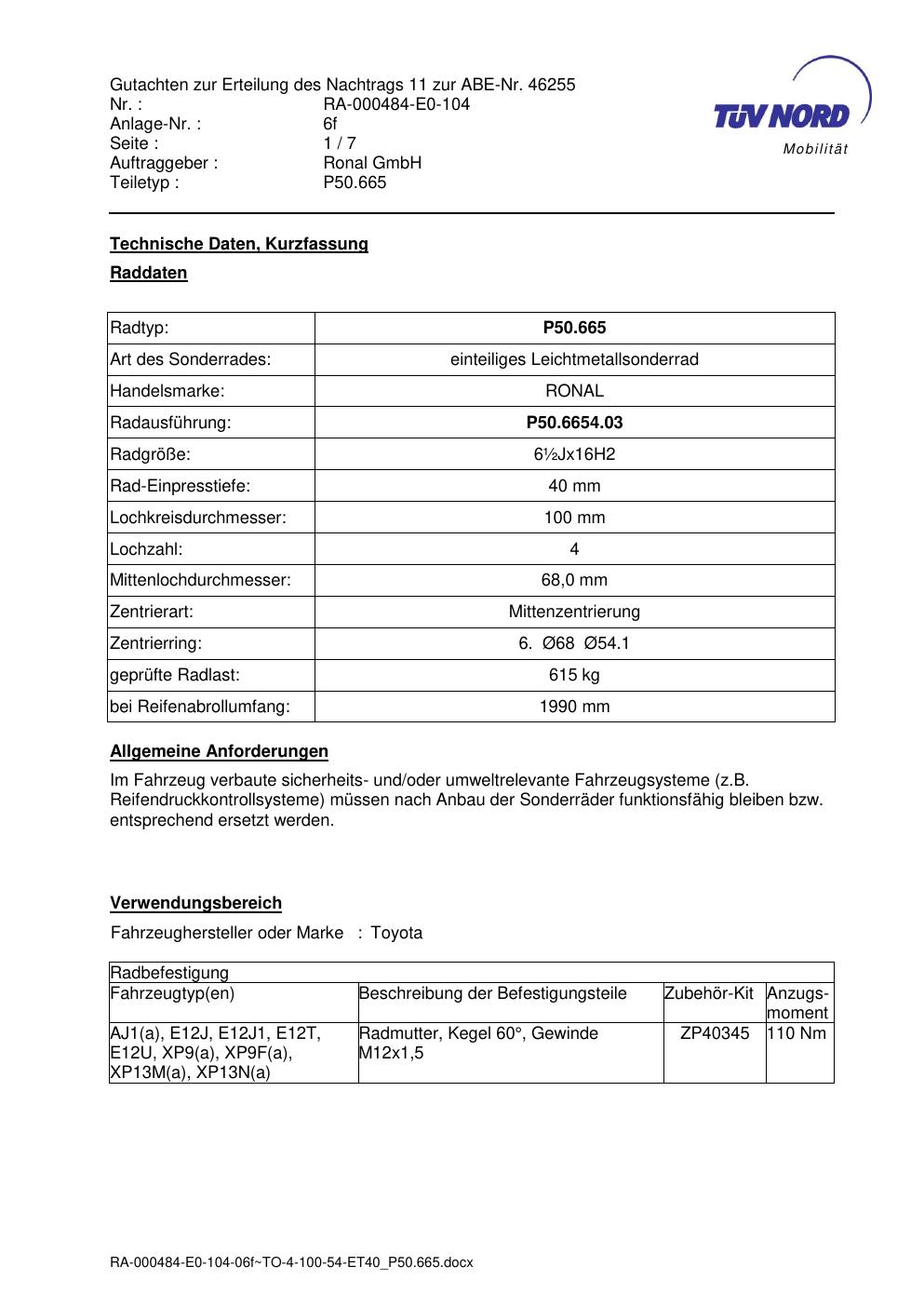 • Stimmt die KBA-Nummer auf der Felge mit diesem Dokument überein?