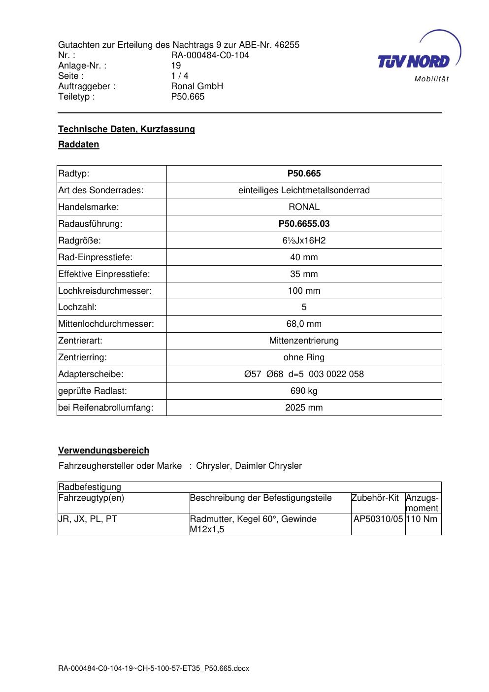 • Stimmt die KBA-Nummer auf der Felge mit diesem Dokument überein?