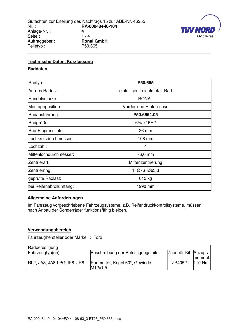 • Stimmt die KBA-Nummer auf der Felge mit diesem Dokument überein?