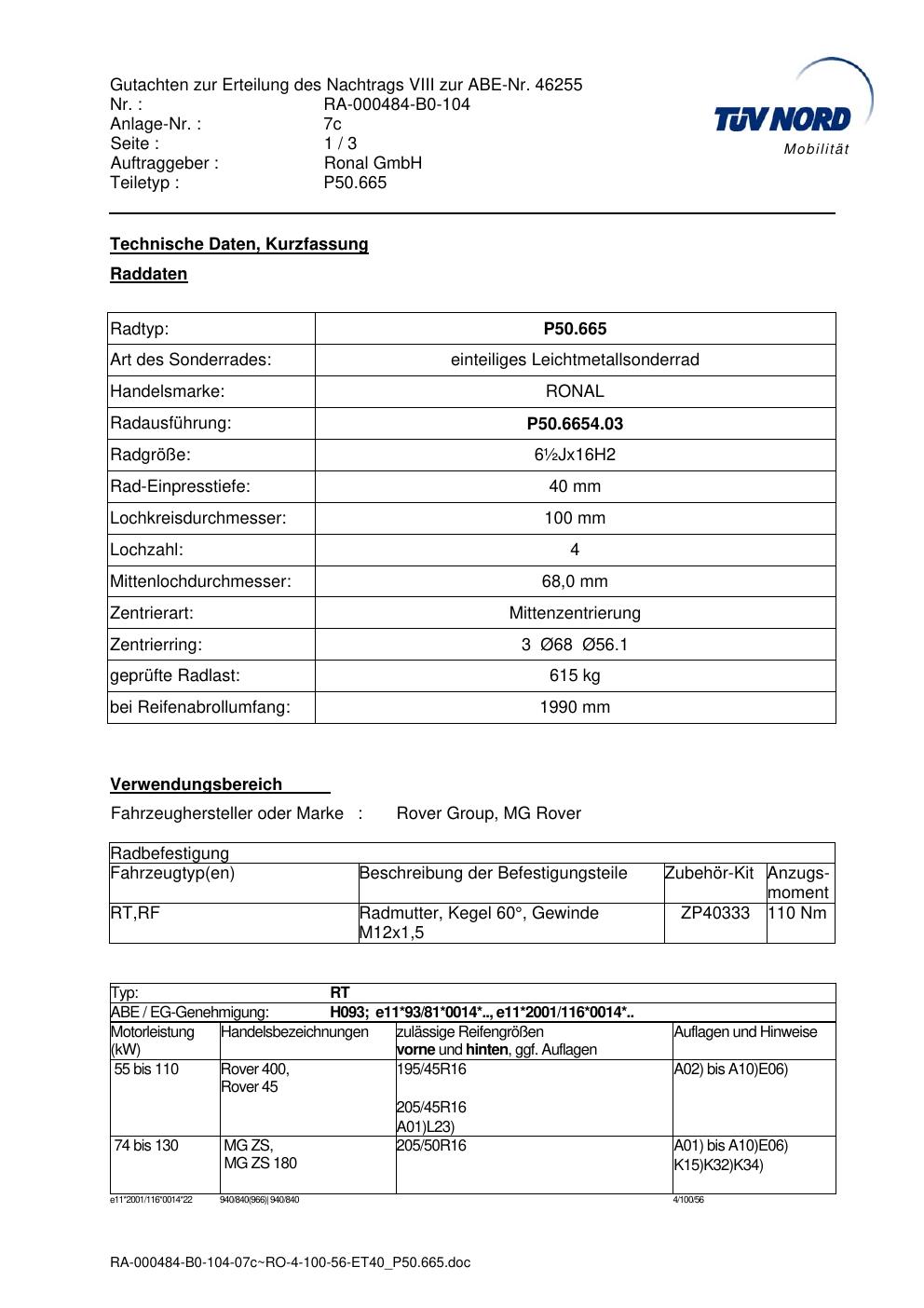 Dieses abe gehört zur Felge Ronal P50.665 in ET0 mit KBA 46255. Die Seite ist dafür gedacht, dass du schnell prüfen kannst, ob KBA, Design und Größe zu deiner Felge passen und danach direkt das richtige PDF lädst.