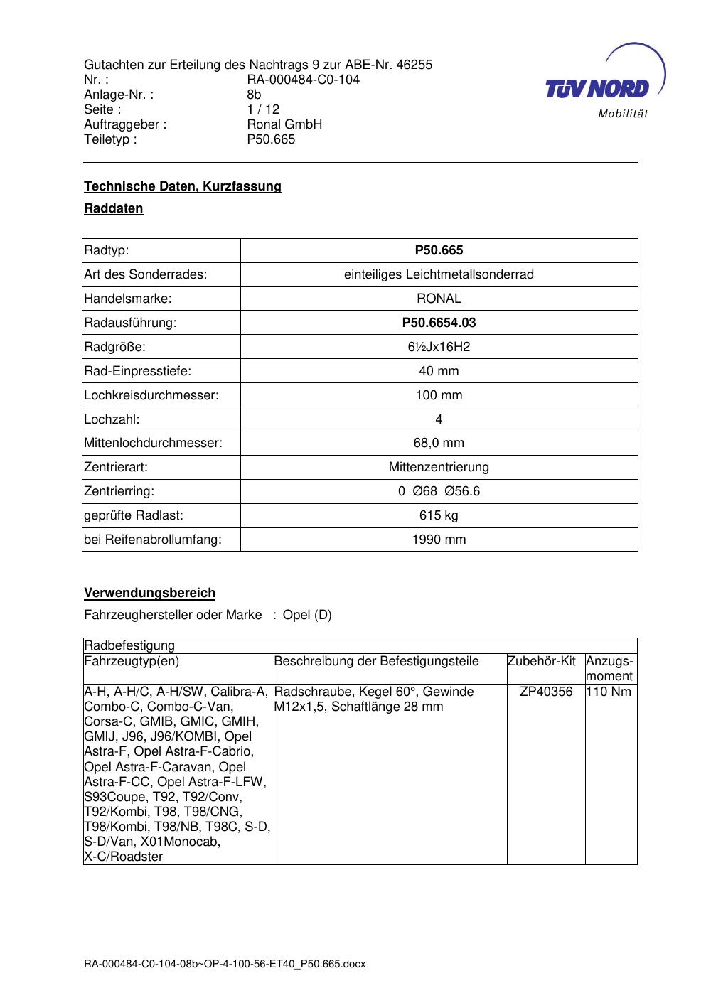 • Stimmt die KBA-Nummer auf der Felge mit diesem Dokument überein?