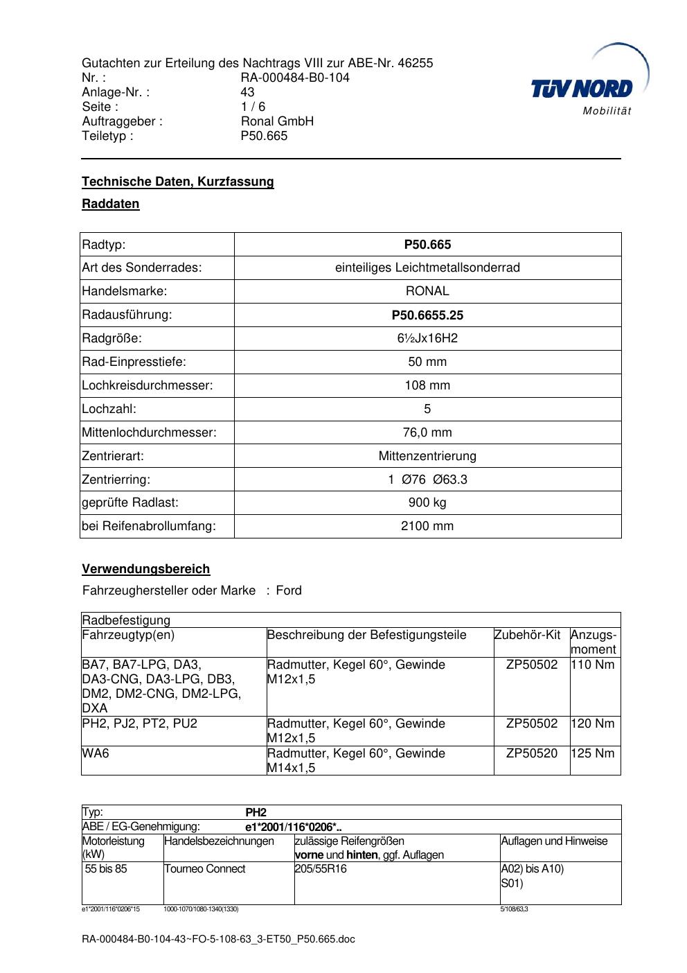 Dieses abe gehört zur Felge Ronal P50.665 in ET0 mit KBA 46255. Die Seite ist dafür gedacht, dass du schnell prüfen kannst, ob KBA, Design und Größe zu deiner Felge passen und danach direkt das richtige PDF lädst.