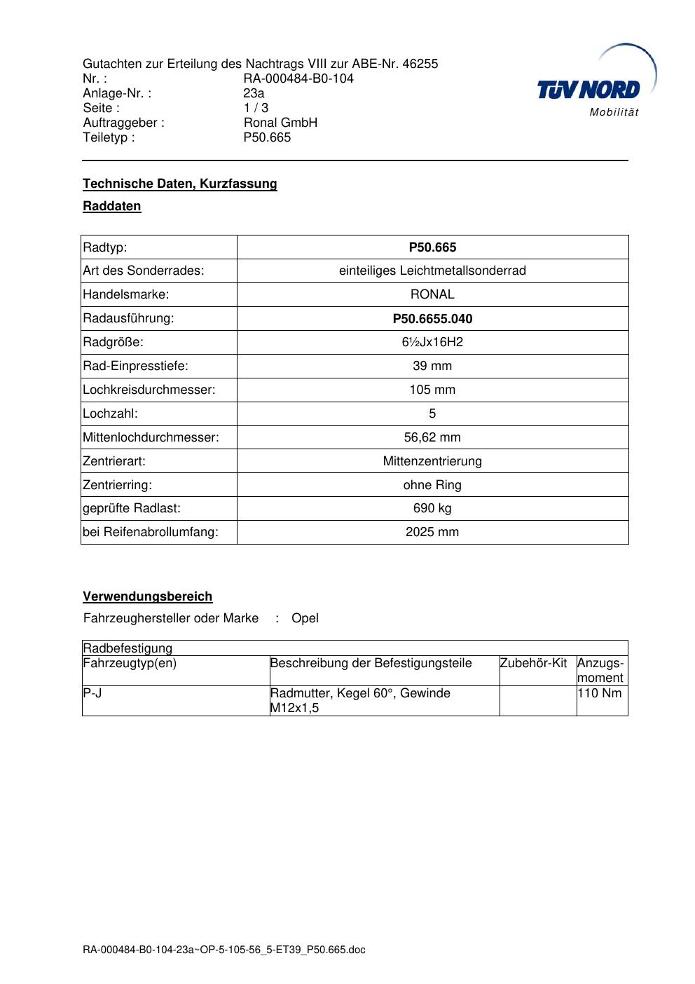 Dieses abe gehört zur Felge Ronal P50.665 in ET0 mit KBA 46255. Die Seite ist dafür gedacht, dass du schnell prüfen kannst, ob KBA, Design und Größe zu deiner Felge passen und danach direkt das richtige PDF lädst.
