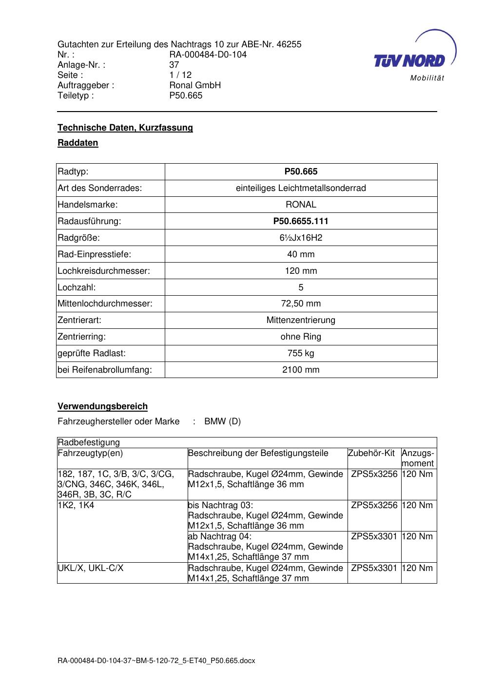 • Stimmt die KBA-Nummer auf der Felge mit diesem Dokument überein?