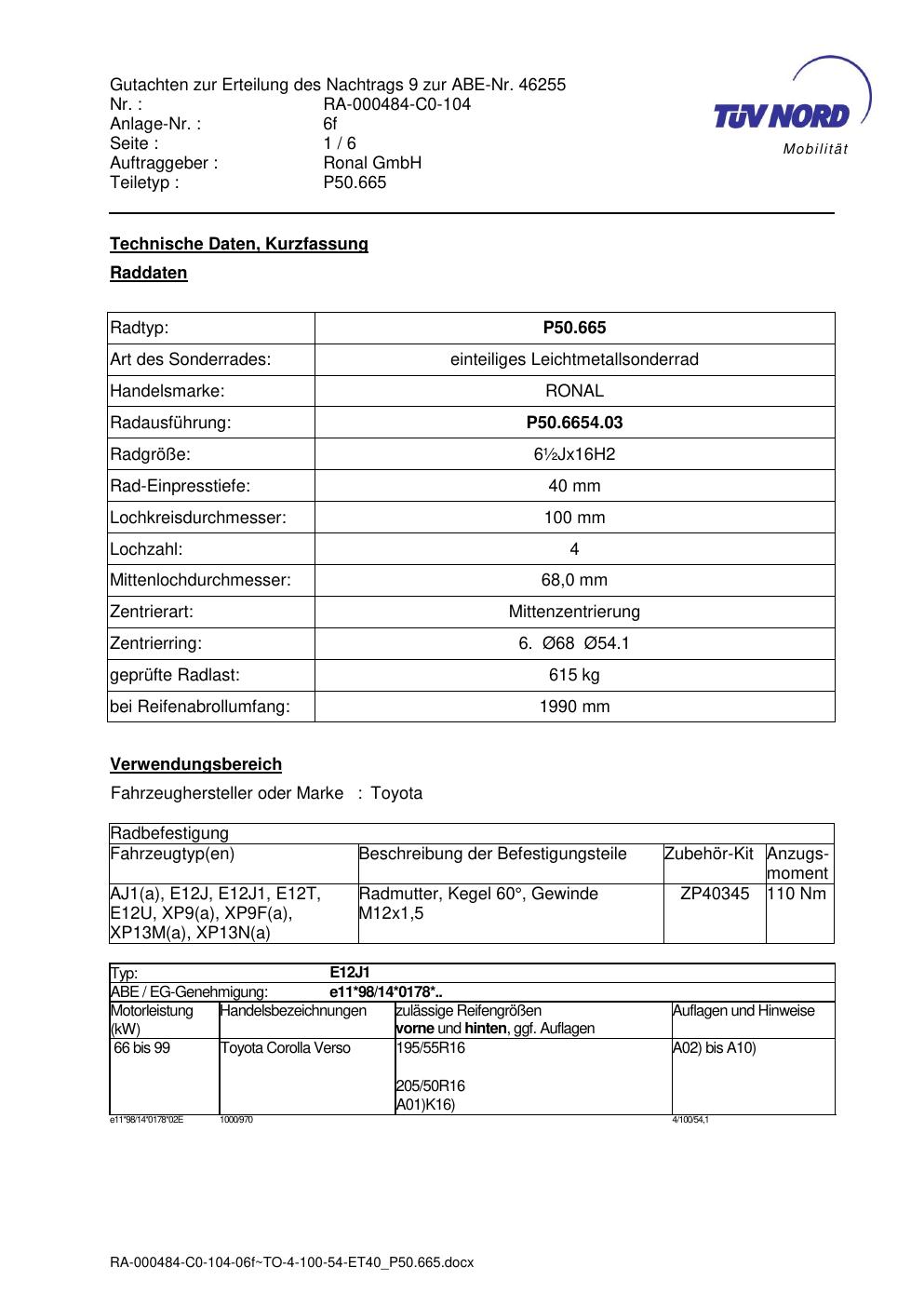 • Stimmt die KBA-Nummer auf der Felge mit diesem Dokument überein?