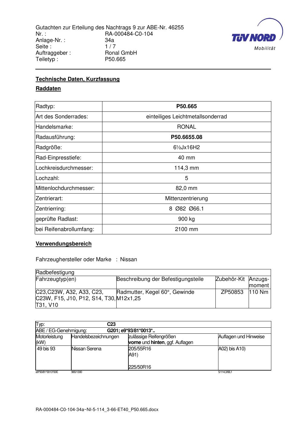 • Stimmt die KBA-Nummer auf der Felge mit diesem Dokument überein?