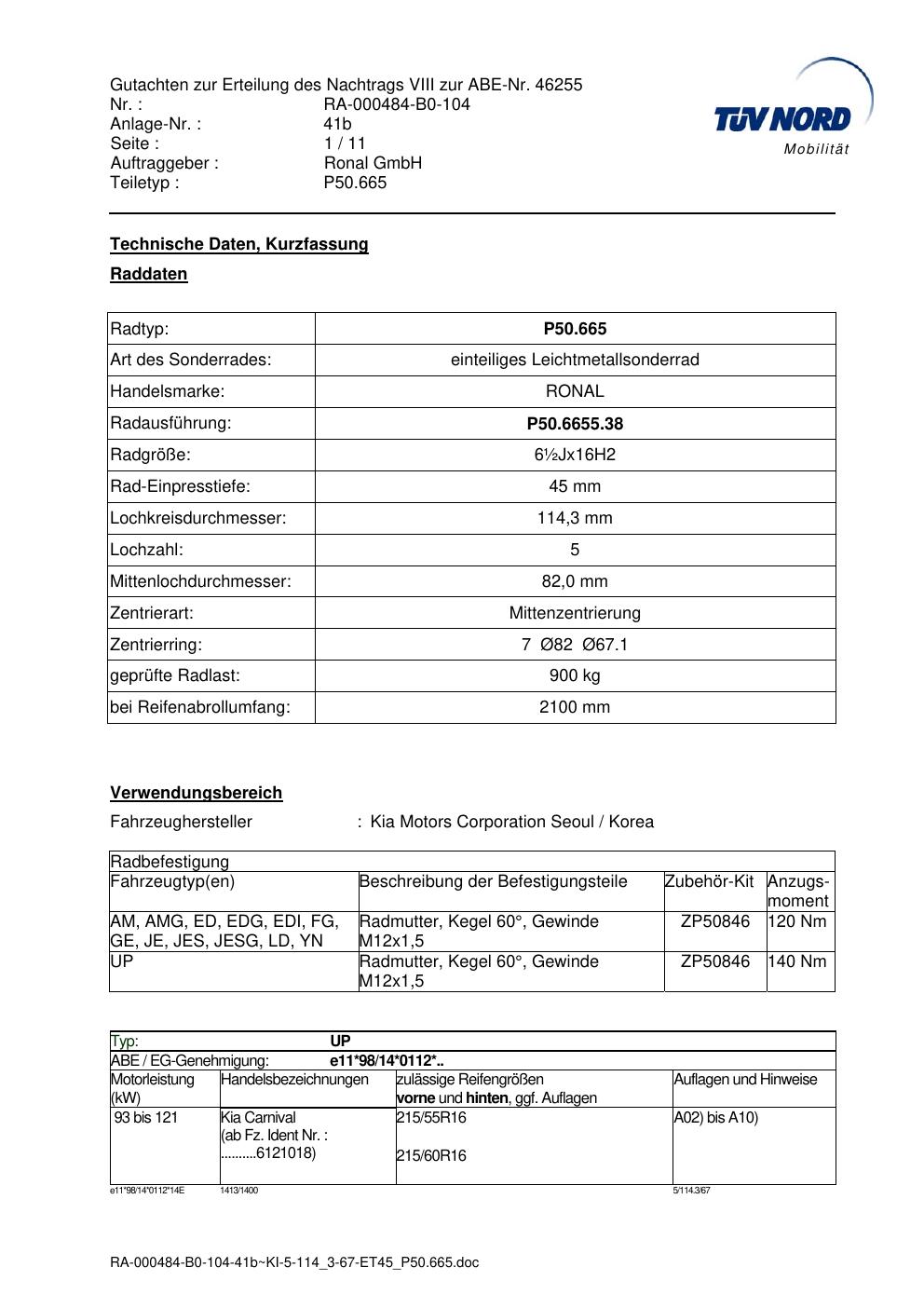 • Stimmt die KBA-Nummer auf der Felge mit diesem Dokument überein?