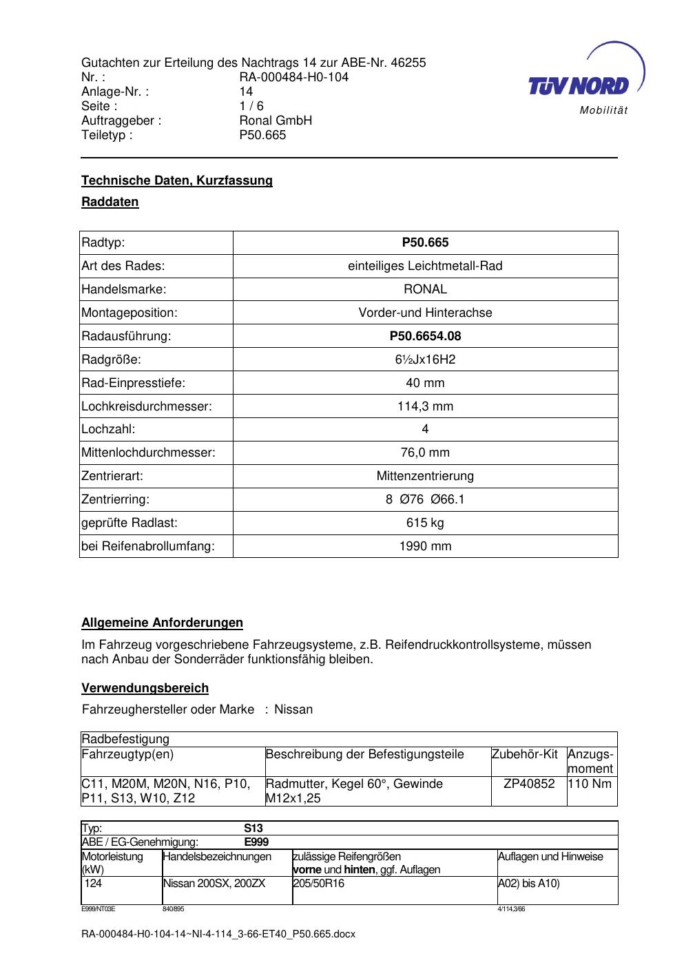 • Stimmt die KBA-Nummer auf der Felge mit diesem Dokument überein?