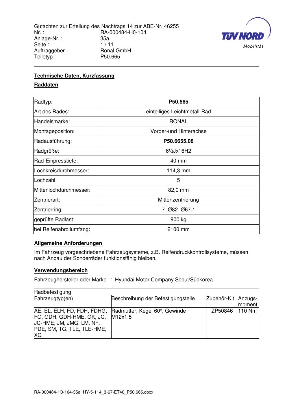 • Stimmt die KBA-Nummer auf der Felge mit diesem Dokument überein?