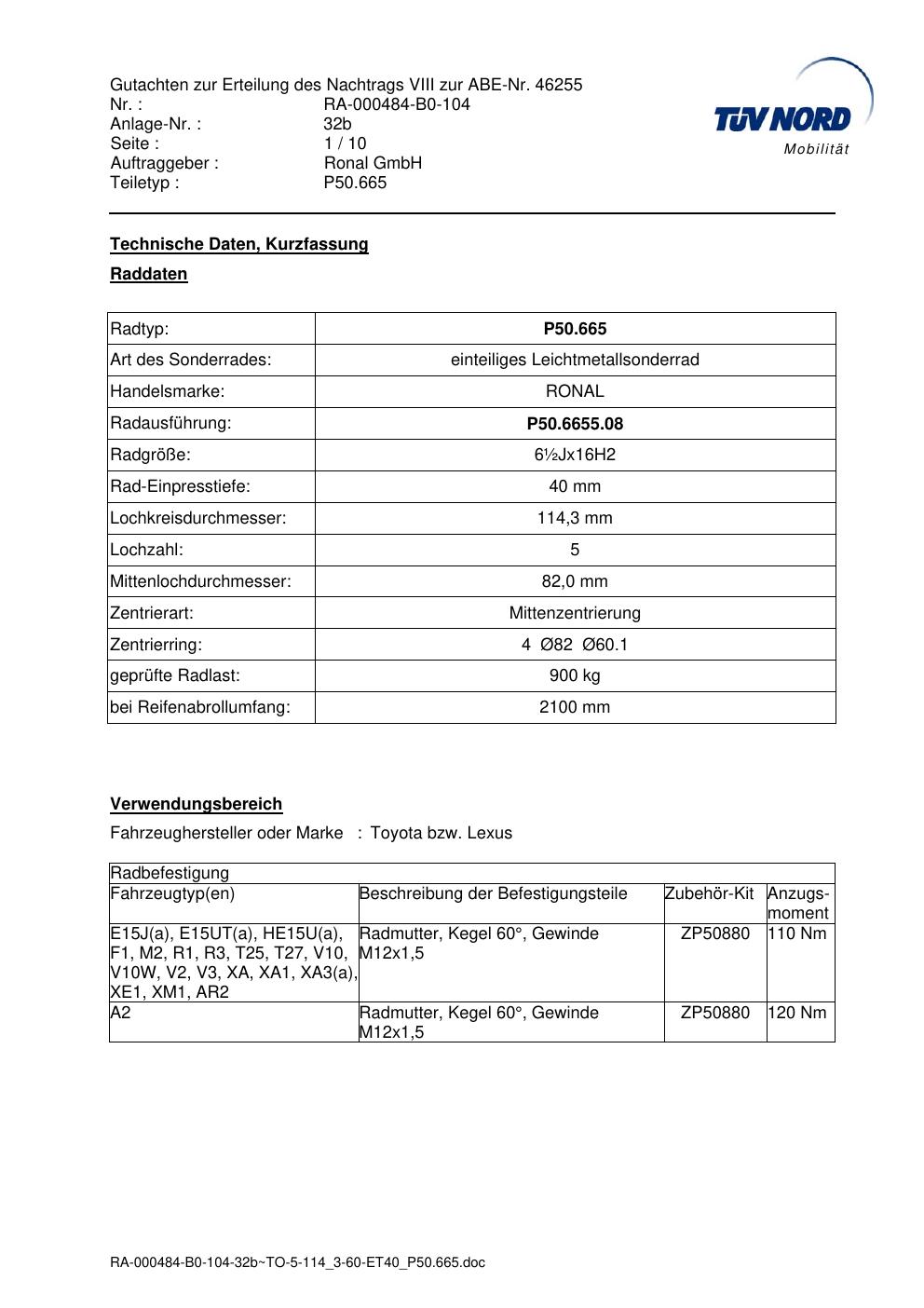 Dieses abe gehört zur Felge Ronal P50.665 in ET0 mit KBA 46255. Die Seite ist dafür gedacht, dass du schnell prüfen kannst, ob KBA, Design und Größe zu deiner Felge passen und danach direkt das richtige PDF lädst.