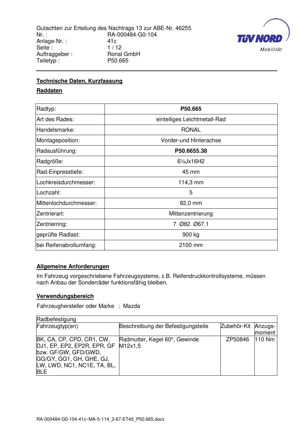 • Stimmt die KBA-Nummer auf der Felge mit diesem Dokument überein?
