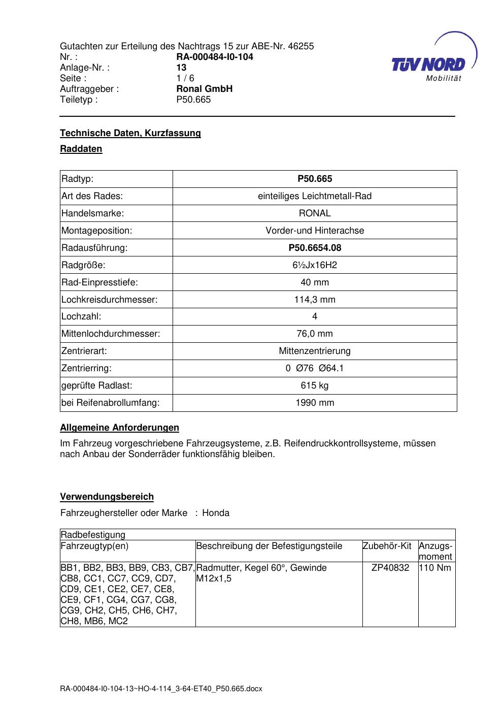 Dieses abe gehört zur Felge Ronal P50.665 in ET0 mit KBA 46255. Die Seite ist dafür gedacht, dass du schnell prüfen kannst, ob KBA, Design und Größe zu deiner Felge passen und danach direkt das richtige PDF lädst.