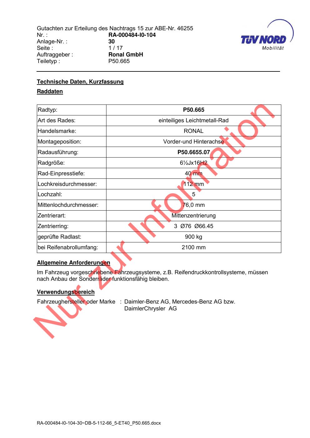 • Stimmt die KBA-Nummer auf der Felge mit diesem Dokument überein?