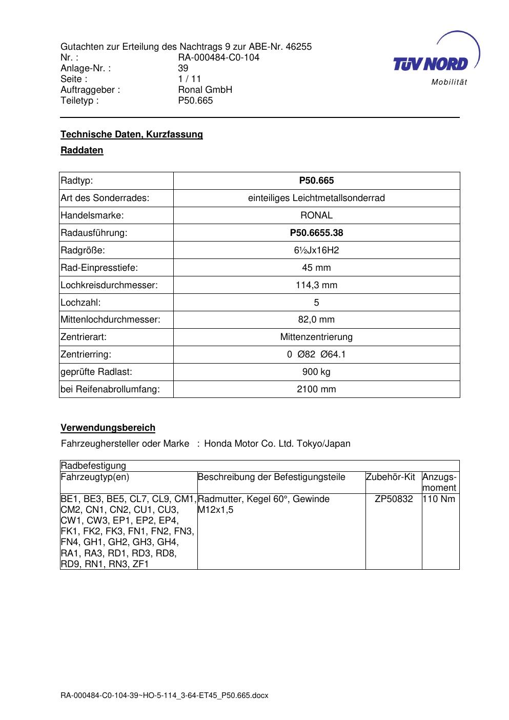 Dieses abe gehört zur Felge Ronal P50.665 in ET0 mit KBA 46255. Die Seite ist dafür gedacht, dass du schnell prüfen kannst, ob KBA, Design und Größe zu deiner Felge passen und danach direkt das richtige PDF lädst.