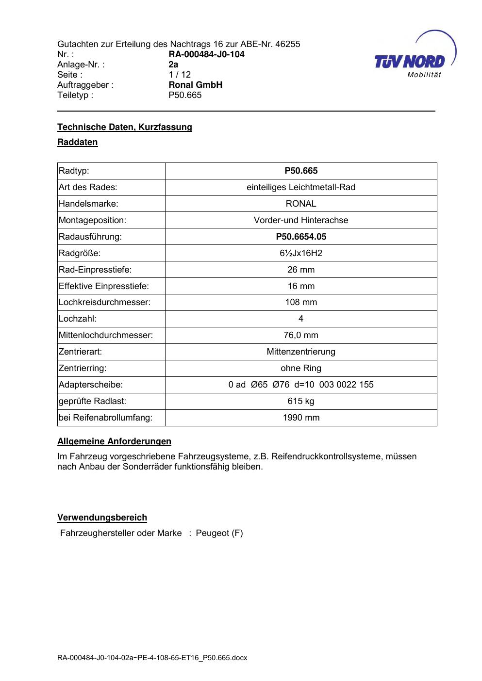 - Stimmt die KBA-Nummer auf der Felge mit diesem Dokument überein?