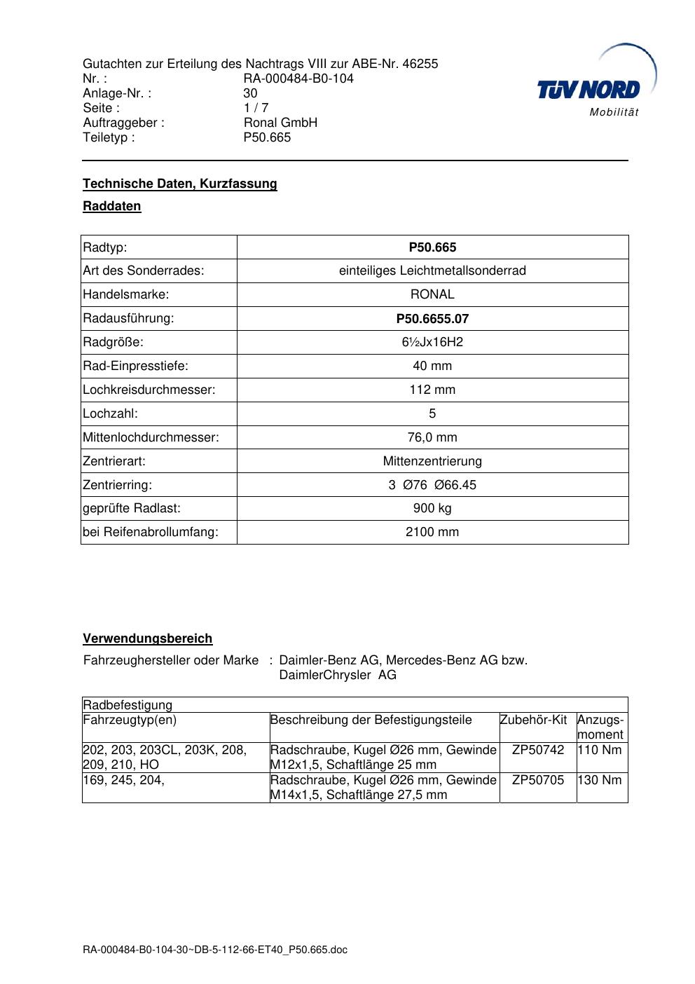 - Stimmt die KBA-Nummer auf der Felge mit diesem Dokument überein?