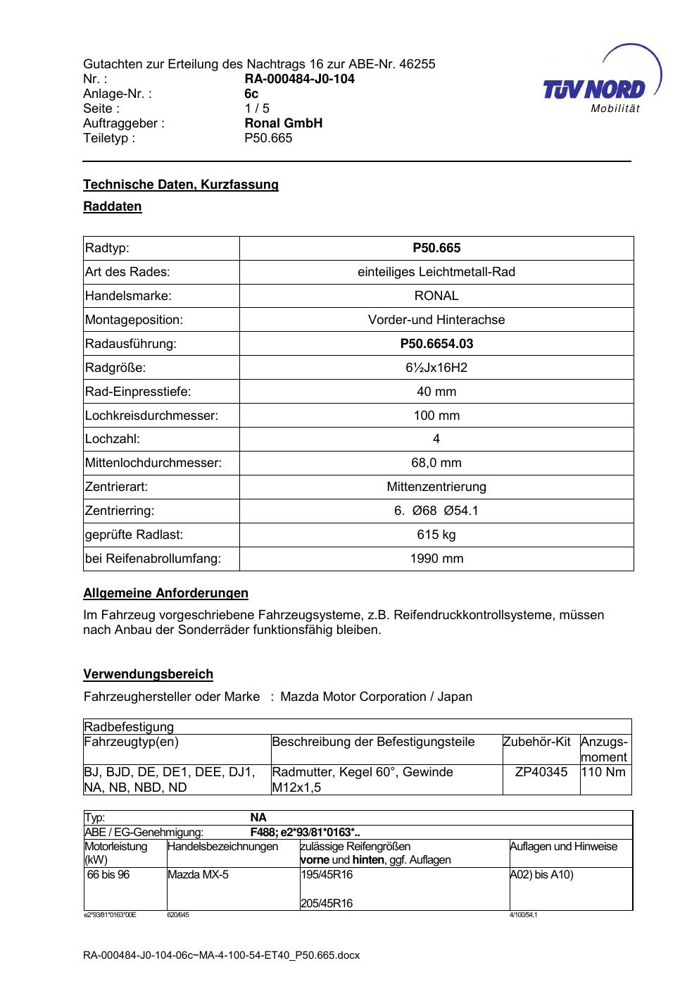 Dieses abe gehört zur Felge Ronal P50.665 in ET0 mit KBA 46255. Die Seite ist dafür gedacht, dass du schnell prüfen kannst, ob KBA, Design und Größe zu deiner Felge passen und danach direkt das richtige PDF lädst.