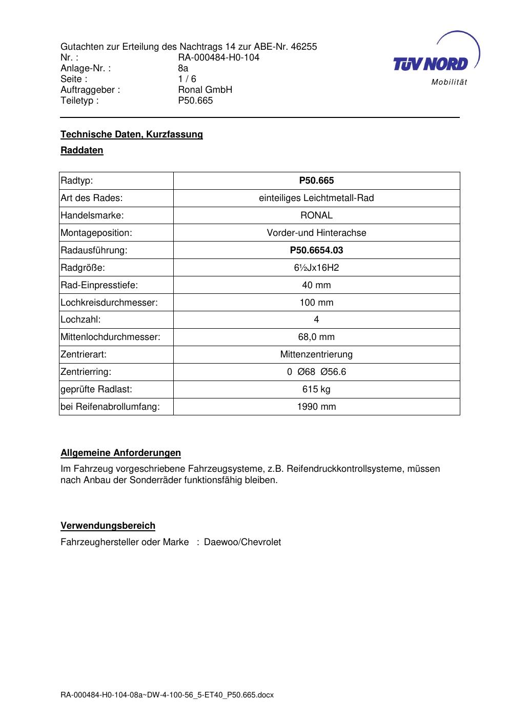 • Stimmt die KBA-Nummer auf der Felge mit diesem Dokument überein?