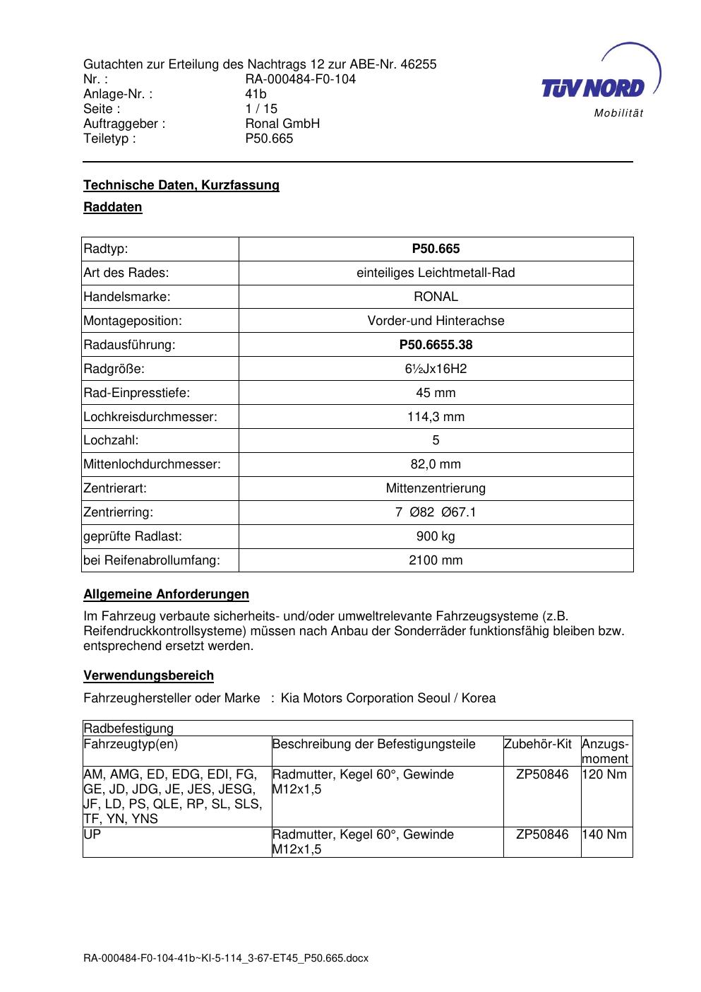 • Stimmt die KBA-Nummer auf der Felge mit diesem Dokument überein?