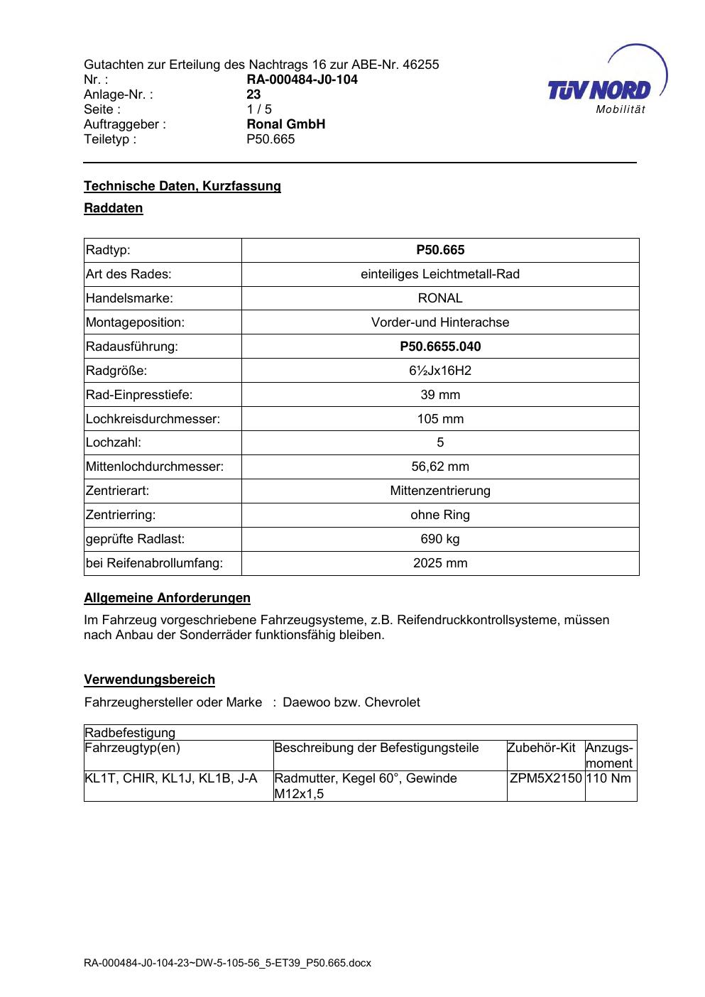 • Stimmt die KBA-Nummer auf der Felge mit diesem Dokument überein?