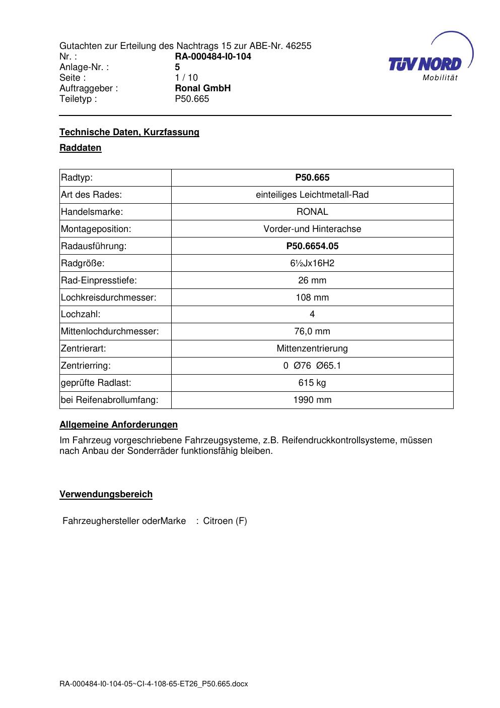 Dieses abe gehört zur Felge Ronal P50.665 in ET0 mit KBA 46255. Die Seite ist dafür gedacht, dass du schnell prüfen kannst, ob KBA, Design und Größe zu deiner Felge passen und danach direkt das richtige PDF lädst.