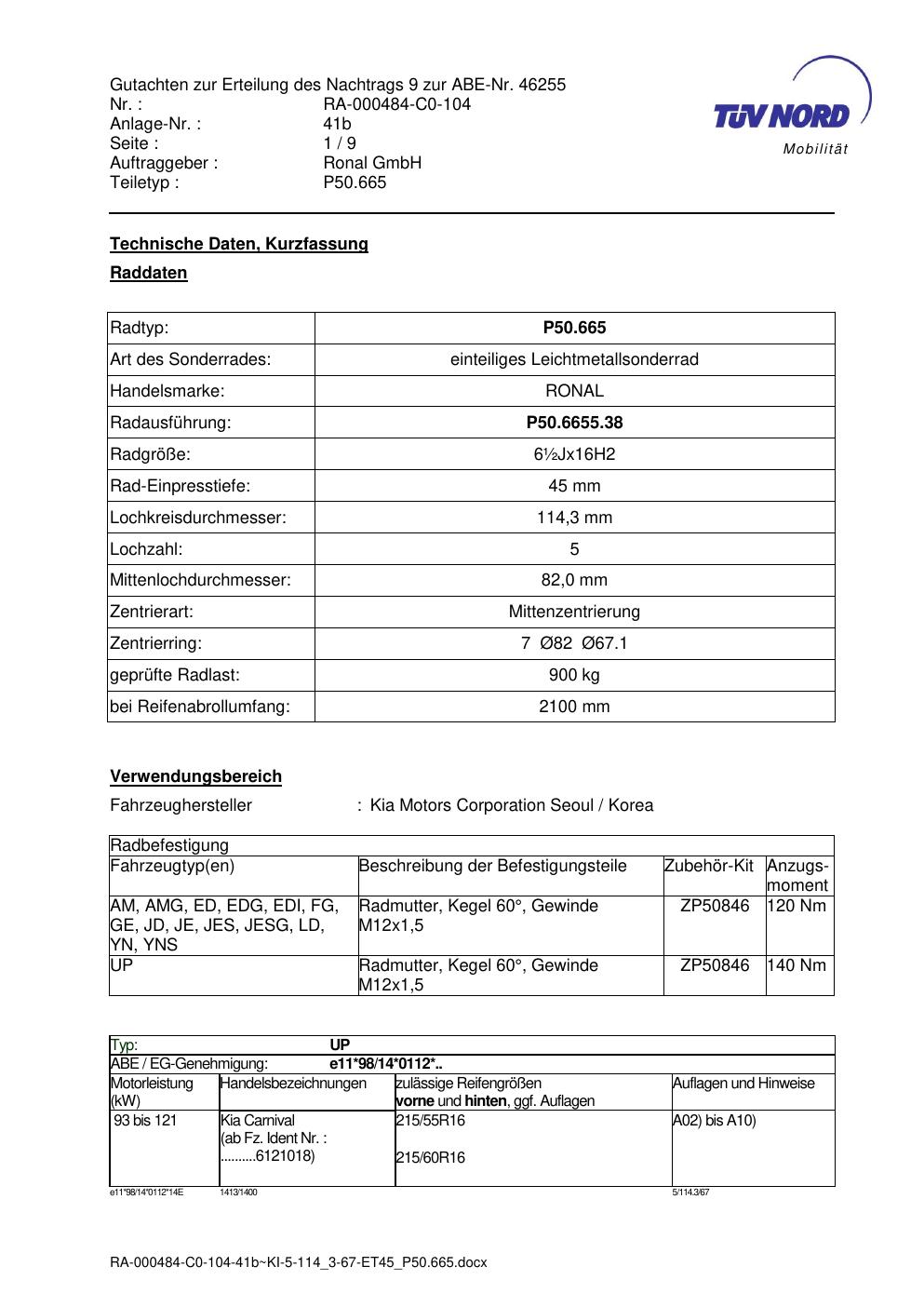 • Stimmt die KBA-Nummer auf der Felge mit diesem Dokument überein?
