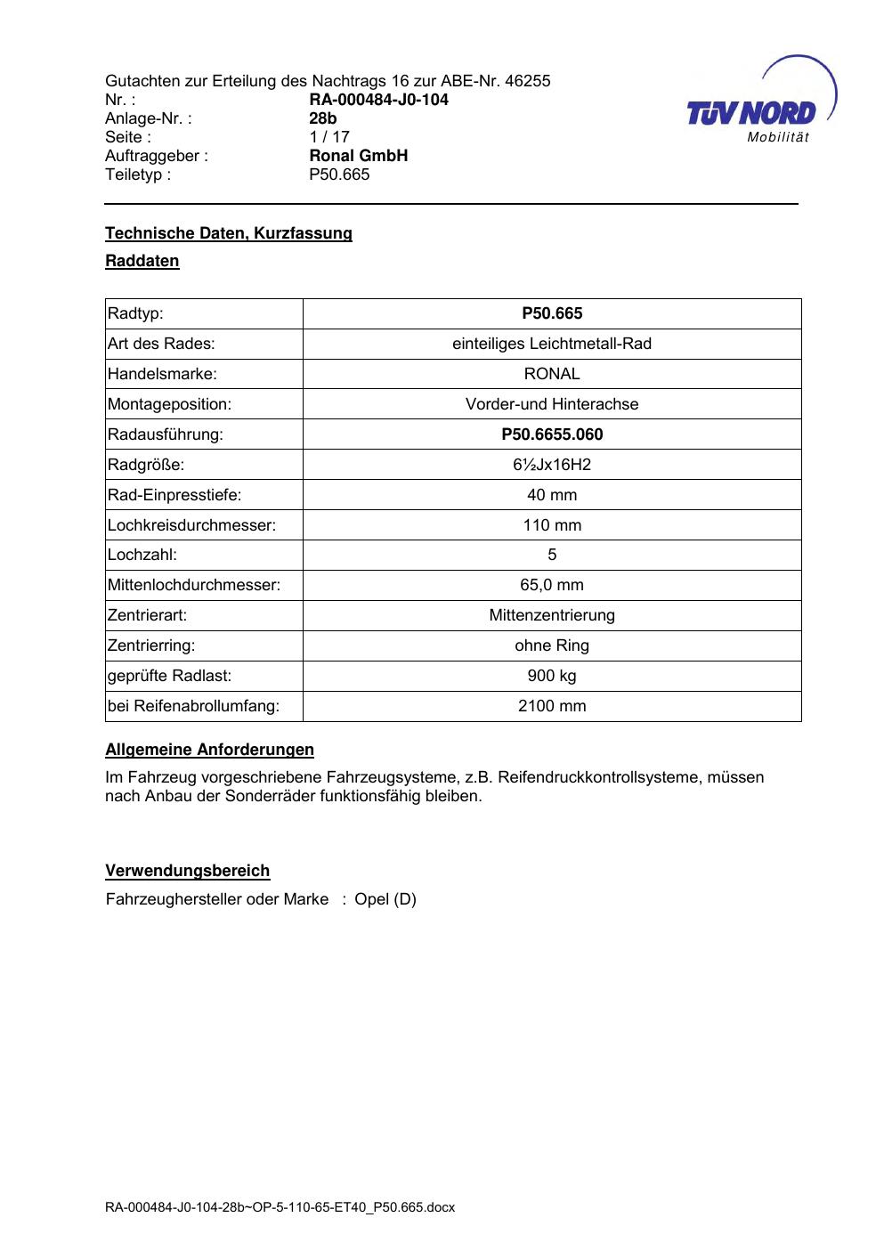 Dieses abe gehört zur Felge Ronal P50.665 in ET0 mit KBA 46255. Die Seite ist dafür gedacht, dass du schnell prüfen kannst, ob KBA, Design und Größe zu deiner Felge passen und danach direkt das richtige PDF lädst.