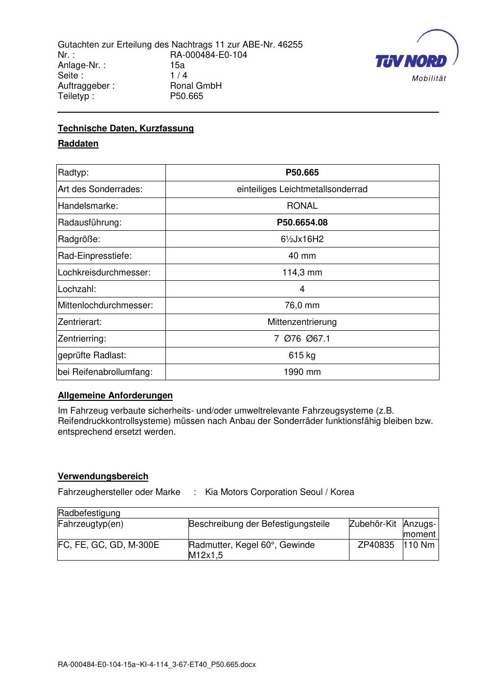 • Stimmt die KBA-Nummer auf der Felge mit diesem Dokument überein?