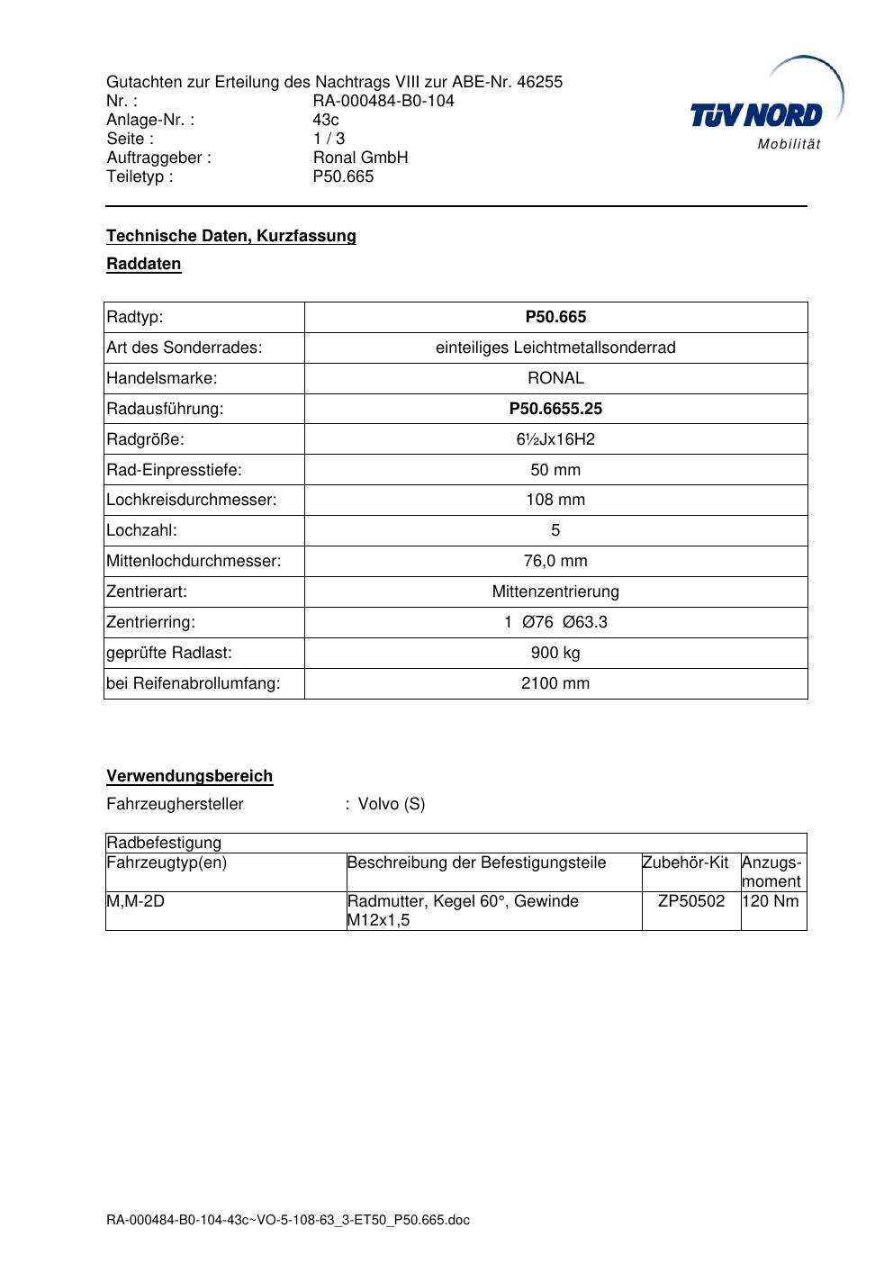 • Stimmt die KBA-Nummer auf der Felge mit diesem Dokument überein?